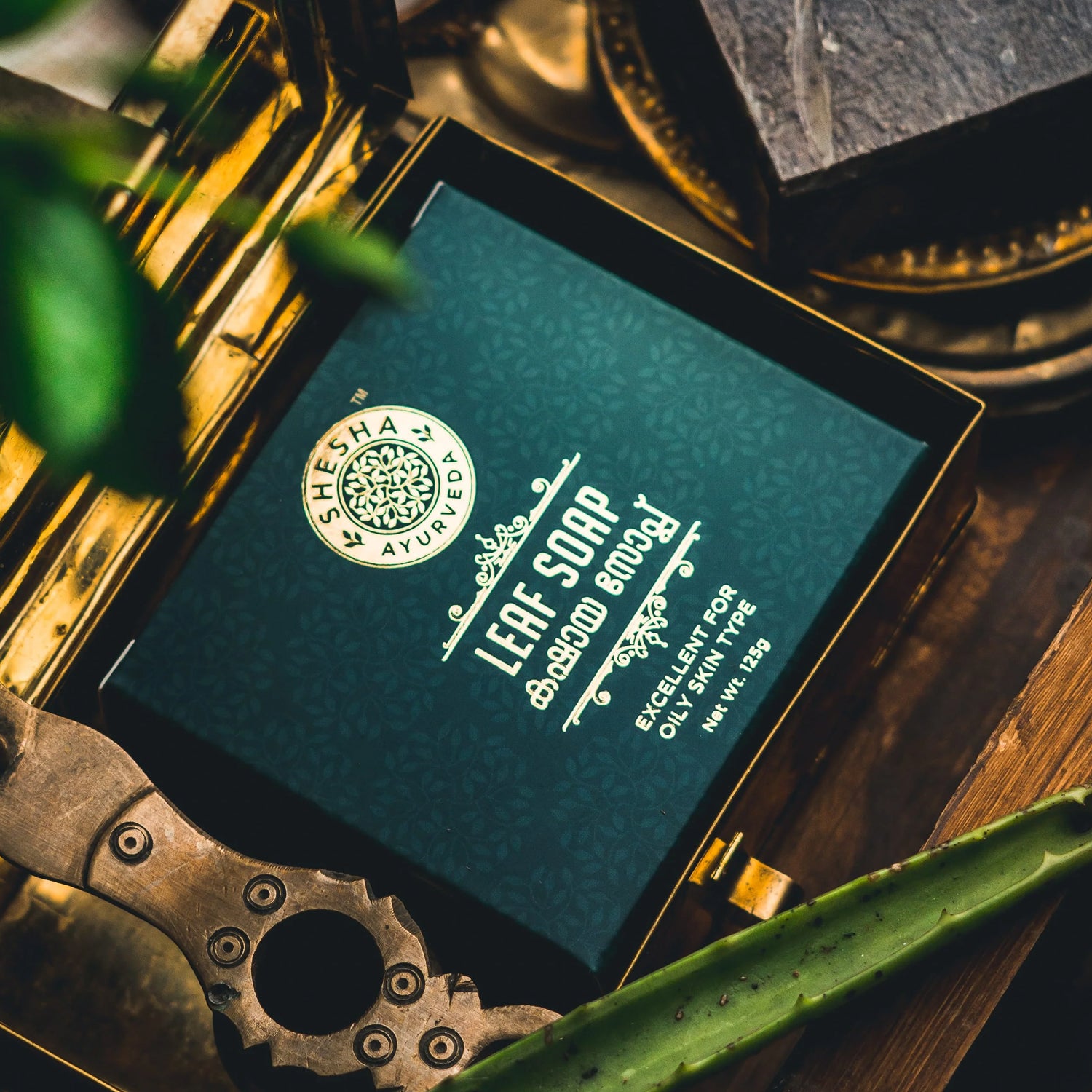 Shesha Ayurveda Kashaya based LEAF Soap help remove impurities, excess oil and dead skin cells from the surface of your skin. It has a gentle exfoliating effect. This can make you feel cleaner, fresher and softer. The best part is that these soaps are natural and gentle on your skin. The benefits of Ayurvedic soap for skin include: Helps to exfoliate dead skin cells that build up on top of your skin’s surface Regular use helps with back acne