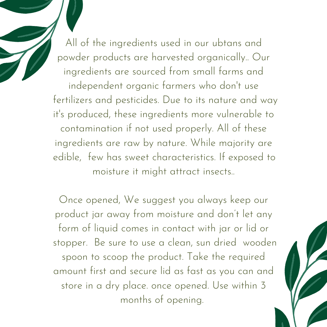Our multi-purpose Kasturi musk turmeric face powder works as a exfoliator as well as a mask & can be customized to suit your skin type by mixing with milk or water or small bee honey or kasturi manjal mist. Leave it on for 10-15 mins & rinse thoroughly.