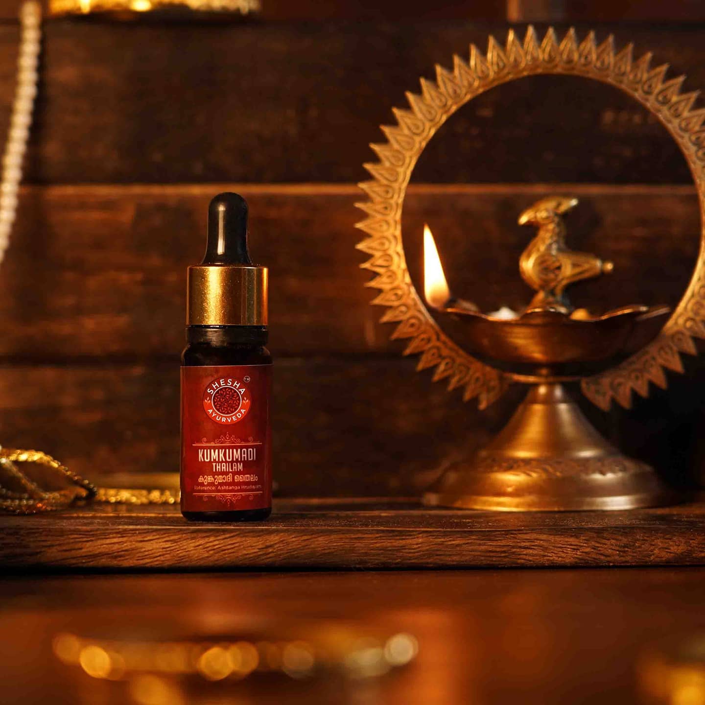 Due to the presence of original Saffron, KUMKUMADI THAILAM is not suitable for use at daytime. If used during the daytime, higher chances of getting tanned. Always make sure you apply sunscreen even if you stay indoors.