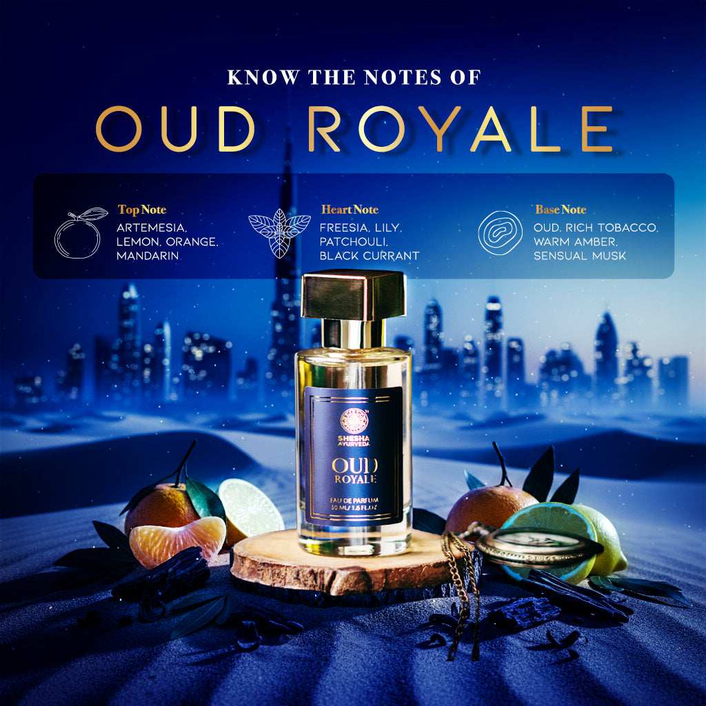 Each 10 ml of the OUD ROYALE contains Oud wood oil(Aquilaria agallocha) 0.001% , lime peel oil(Citrus aurantifolia) 0.001%, Base QS.