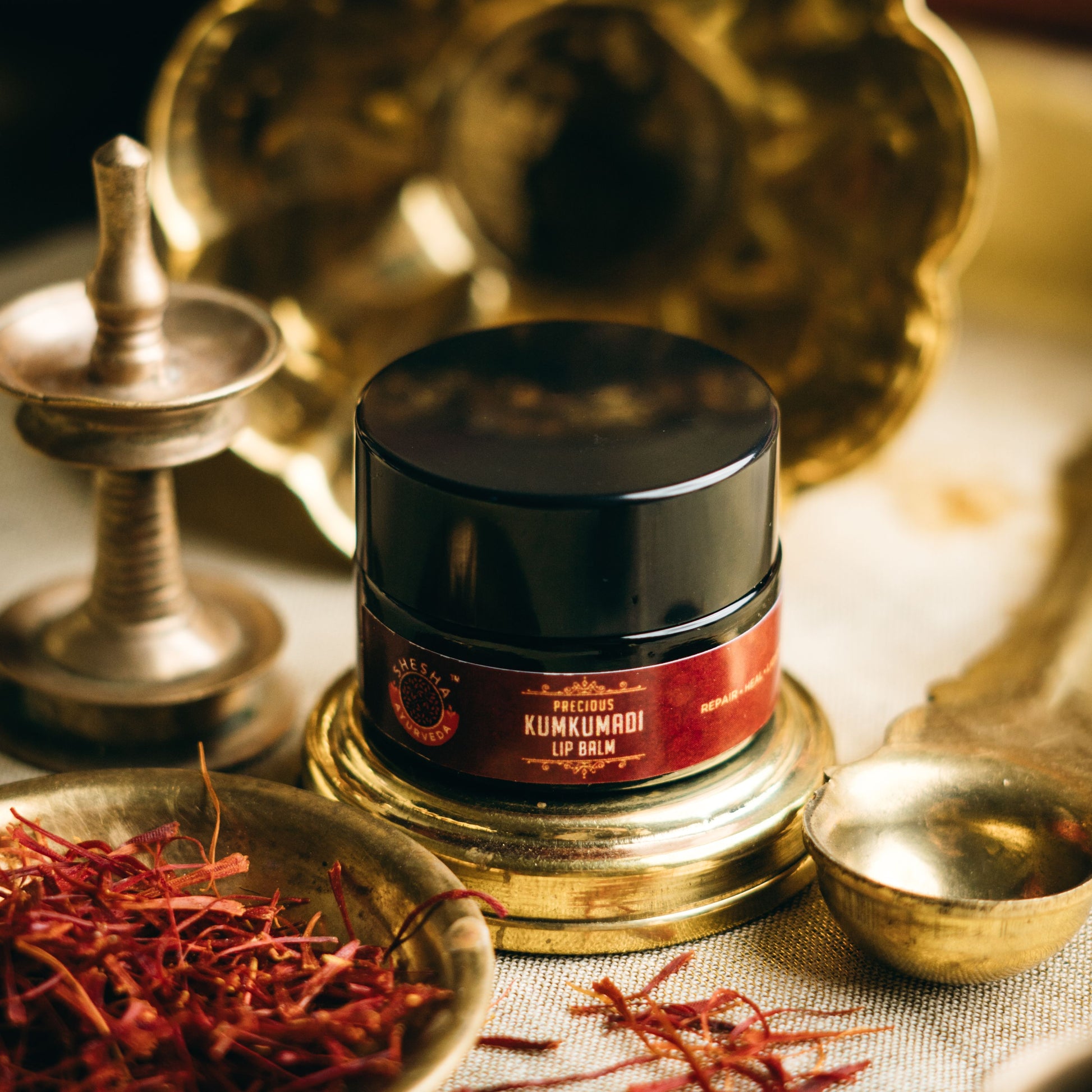 - The key ingredient of this lipbalm is our Authentic KUMKUMADI THAILAM – Made as per Classical Ayurvedic Reference text – Ashtanga Hrudayam and contains 100% pure & original export quality Kashmiri Saffron