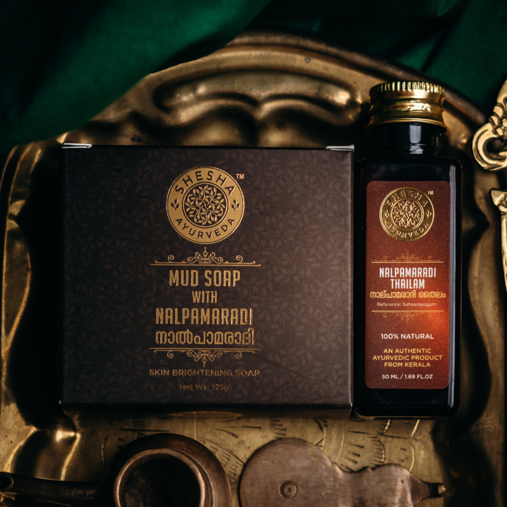 Within a week of using Nalpamaradi Thailam as a pre-bath face and body massage oil, You can see increased skin luminosity and natural glow.