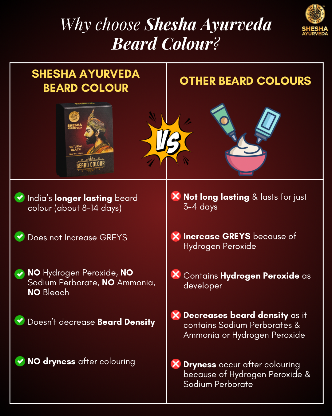 NO, Shesha Ayurveda Beard Color is free from ammonia and harmful chemicals like Bleach, Hyderogen Peroxide, Perborates etc
